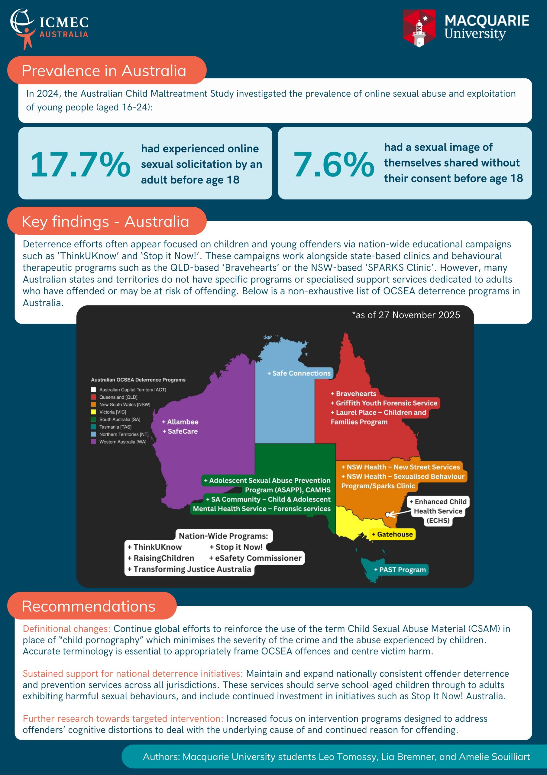 We commend these dedicated students and their significant contributions to this crucial field of study. It has been a privilege for ICMEC Australia to have partnered with these students to recognise their valuable insights.